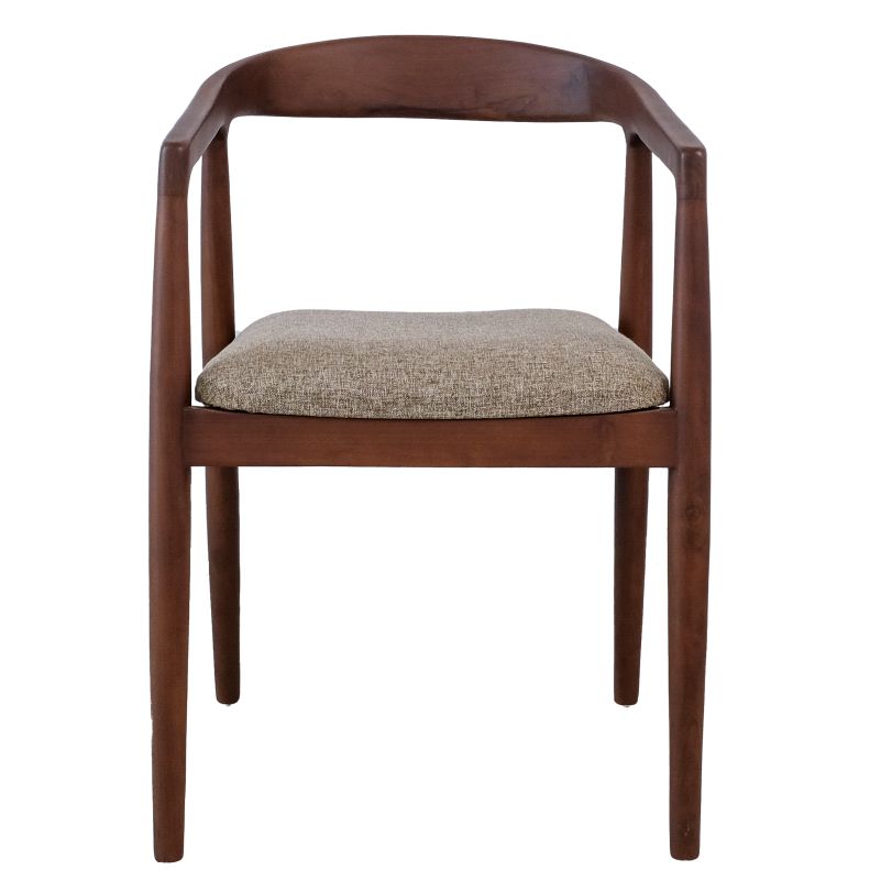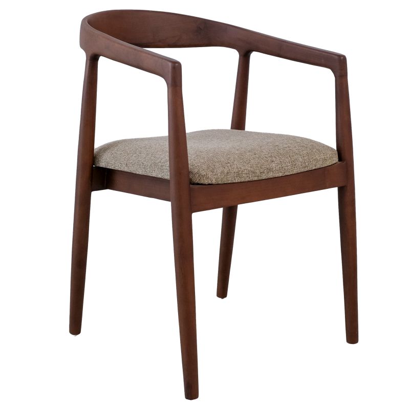 This modern armchair embodies the timeless appeal of mid-century modern design. Featuring a sleek wooden frame with gently curved arms and legs, the chair exudes a sense of sophistication and comfort. The upholstered seat cushion provides a cozy seating experience, while the chair’s overall form adds a touch of retro charm to any living space.